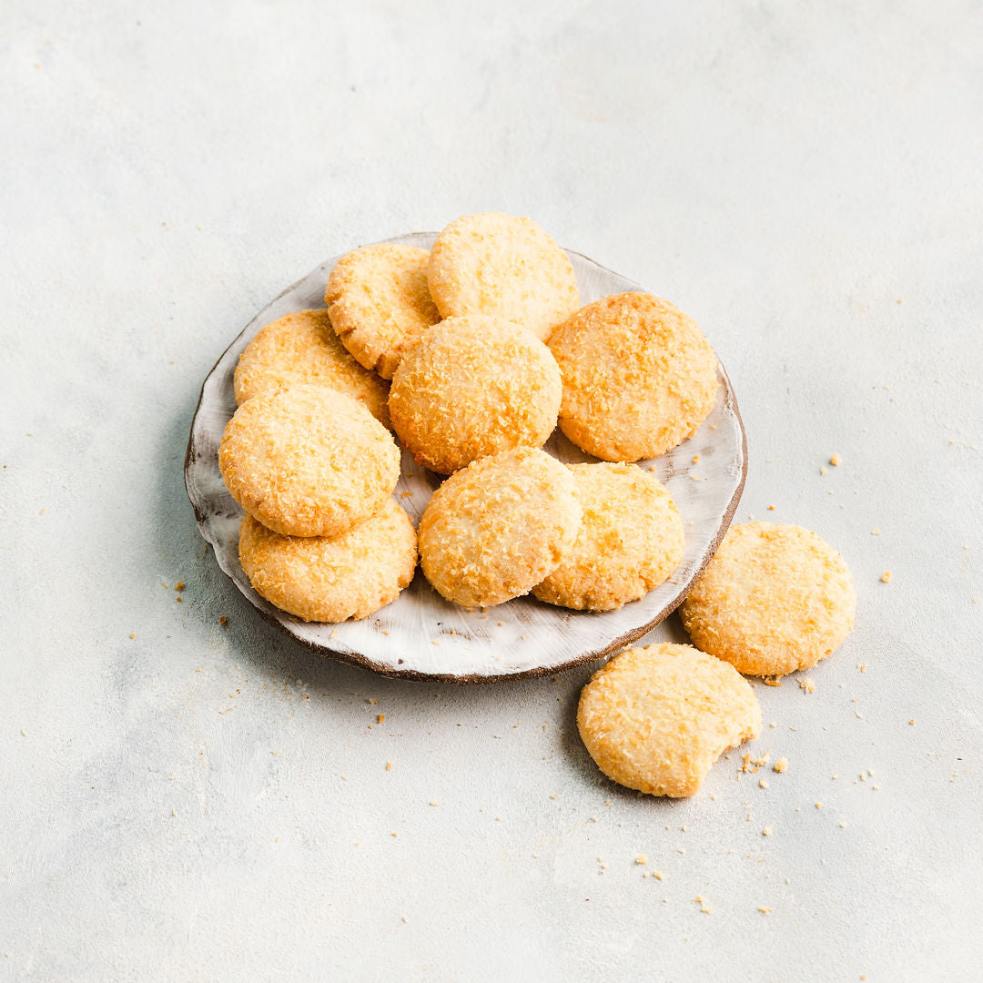 Coconut: a classic Indian flavour that never goes out of fashion. These cookies are crunchy, buttery and full of festive feels. This product is a favourite that we bring back year on year.Ingredients: Flour, butter, organic coconut oil, sugar, cornflour, dessicated coconutAllergens: Dairy, Gluten
